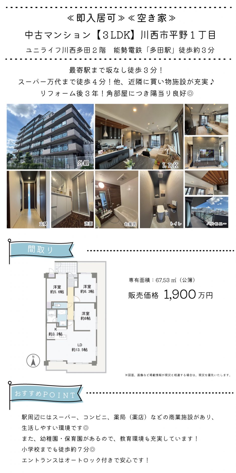 ■中古マンション▶3LDK【川西市多田★駅近!】